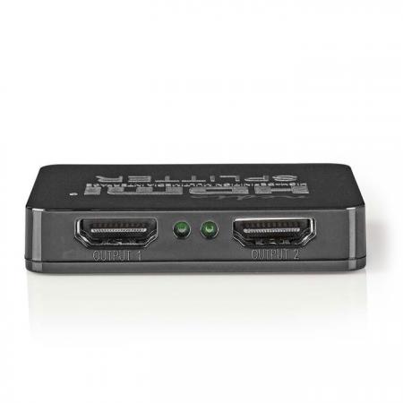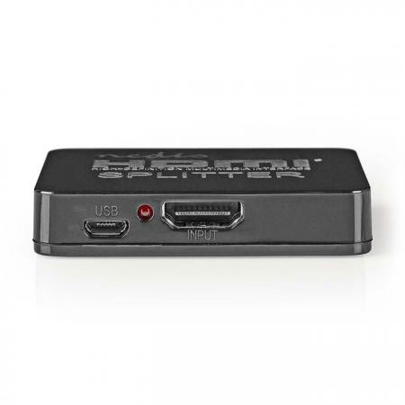Splitter HDMI 2 θυρών, με υποστήριξη 4Κ2Κ, Full HD και 3D. Προβάλλεται το περιεχόμενο μιας πηγής HDMI σε 2 διαφορετικές συσκευές ταυτόχρονα. - Υποστηρίζει περιεχόμενο 4K2K, Full HD 1080p και 3D - Διαχωρίζει 1 πηγή HDMI σε 2 εξόδους HDMI Τεχνικά χαρακτηριστικά - Είσοδοι: 1x HDMI- Έξοδοι: 2 x HDMI - Τύπος συσκευής: HDMI - Μέγιστη ανάλυση: 3840 x 2160 - Εύρος συχνοτήτων: 225 MHz - Ταχύτητα μεταφοράς δεδομένων: 2.25 Gbps - Υποστηριζόμενες τεχνολογίες: 3D, Full HD, 4K, HDCP 1.3 Compatible- Διαστάσεις: 62 x 51 x 12 mm - Χρώμα: Μαύρο - Υλικό κατασκευής: ABS / PVC - Τροφοδοσία: micro USBΠεριεχόμενα συσκευασίας - 1x splitter - 1x καλώδιο USB