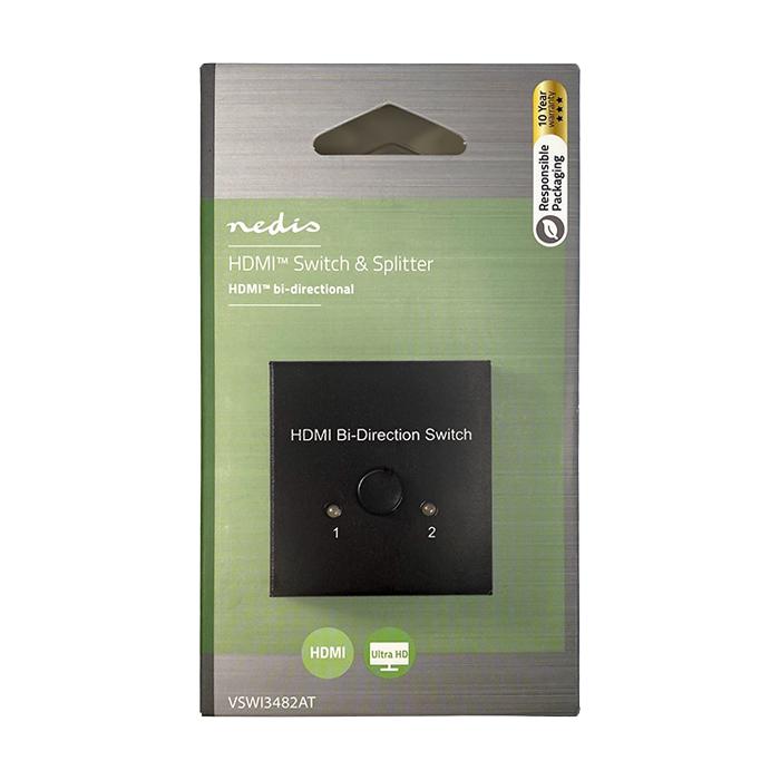 HDMI Switch.Συνδέστε 2 διαφορετικές συσκευές HDMI και επιλέξτε μέσω του διακόπτη την προβολή μίας συσκευής κάθε φορά σε μια οθόνη.- Υποστηρίζει Ultra HD 4K2K @ 60Hz και 3D- Συνδέει έως και 2 οθόνες HDMI Ultra HD σε μία μόνο συσκευή- Συνδέει 1 οθόνη Ultra HD HDMI για προβολή σε 2 συσκευές (με επιλογή)Χαρακτηριστικά:- Είσοδος: 1x HDMI, 2x HDMI- Έξοδος: 1x HDMI, 2x HDMI- Mεγ. υποστηριζόμενη ανάλυση: 4K@60Hz- Ταχύτητα μεταφοράς δεδομένων: 6 Gbps- HDCP version: HDCP 2.2 Compatible- Διαστάσεις: (ΜxΠxΥ): 81 x 61 x 17 mm- Χρώμα: Ανθρακί- Υλικό κατασκευής: Μεταλλικό