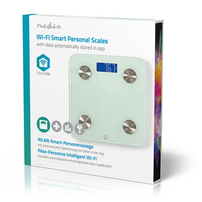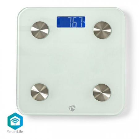 Wifi smart ηλεκτρονική ζυγαριά μπάνιου, με δυνατότητα πολλαπλών αναλύσεων.Ηλεκτρονική ζυγαριά μπάνιου για πολλαπλές αναλύσεις: βάρους, σωματικού λίπους, ποσοστού νερού, μυϊκής μάζας, βάρους των οστών, οργανικού λίπους, μέγεθος σώματος θερμιδικών απαιτήσεων ανά ημέρα (BMR) και Δείκτη Μάζας Σώματος (BMI).- Ευανάγνωστη οθόνη LCD 30 x 73 mm, με μπλε φωτισμό- Μνήμη για έως 8 διαφορετικούς χρήστες- Αναγνωρίζει και καταγράφει δεδομένα για έως και 8 διαφορετικούς χρήστες, με ανεξάρτητο συγχρονισμό- Μοντέρνος σχεδιασμός, από γυαλί υψηλής ποιότητας και ανοξείδωτο ατσάλι- Αποθηκεύει αυτόματα τις μετρήσεις σας μέσω Wi-Fi στο smartphone ή το tablet σας- Δωρεάν, εύχρηστο app Nedis SmartLife- Μονάδα μέτρησης βάρους σε kg, lb, st (με δυνατότητα επιλογής)- Μέγιστο βάρος: 180 kg- Κλίμακα:100 g- Αυτόματη ενεργοποίηση με το πάτημα του ποδιού (Step-on-automatic)- Επιφάνεια ανθεκτική στις γρατζουνιές και εύκολη στον καθαρισμό- Αντιολισθητικά ποδαράκια για σταθερή βάση- Αυτόματη απενεργοποίηση, για μεγαλύτερη διάρκεια της μπαταρίας- Ένδειξη χαμηλής μπαταρίας- Διαθέσιμη εφαρμογή για Android & iOS- Δυνατότητα εμφάνισης γραφημάτων- Εύρος συχνοτήτων: 2400 - 2483,5 MHz- Χρώμα: Λευκό- Τροφοδοσία: 3 x AAA / R03 (δεν συμπεριλαμβάνονται)- Διαστάσεις (ΜxΥxΠ): 280 x 22 x 280mm
