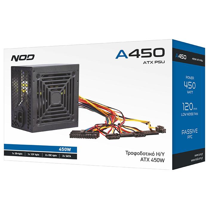 Τροφοδοτικό Η/Υ ATX 450W σε μαύρο χρώμα. Το νέο τροφοδοτικό NOD συνδυάζει την αξιοπιστία με την υψηλή ποιότητα και την προσιτή τιμή!Αξιόπιστο και υψηλής απόδοσης τροφοδοτικό (PSU) για σταθερό Η/Υ, ATX 450W, μαύρου χρώματος, σε retail συσκευασία. Value for money λύση για την τροφοδοσία του σταθερού υπολογιστή σας. Διαθέτει αθόρυβο ανεμιστήρα 120mm, διακόπτη On/Off και παθητικό PFC. Διαθέτει πληθώρα συνδέσεων, για την κάλυψη όλων των αναγκών ενός entry level Η/Υ. Ιδανική επιλογή τόσο για την άμεση αντικατάσταση ενός χαλασμένου τροφοδοτικού, όσο και για την συναρμολόγηση ενός καινούριου "entry level" Η/Υ. Στην συσκευασία περιλαμβάνονται επιπλέον 4 βίδες στερέωσης, 2 δεματικά και το καλώδιο τροφοδοσίας.Χαρακτηριστικά: - ATX Power Supply - 450 Watt - Ανεμιστήρας χαμηλού θορύβου: 120mm- Διακόπτης On/Off - Passive PFC - Καλώδιο τροφοδοσίας: 1.20m- Πιστοποιήσεις: CE και RoHS Καλώδια και συνδέσεις: - 1x Motherboard 20+4pin (550mm)- 2x IDE 4 pin (HDD) (550mm)- 2x SATA (690mm)- 1x 12V 4 pin (P4) (550mm)