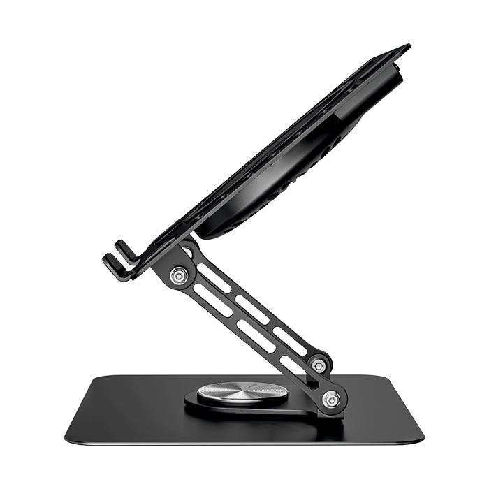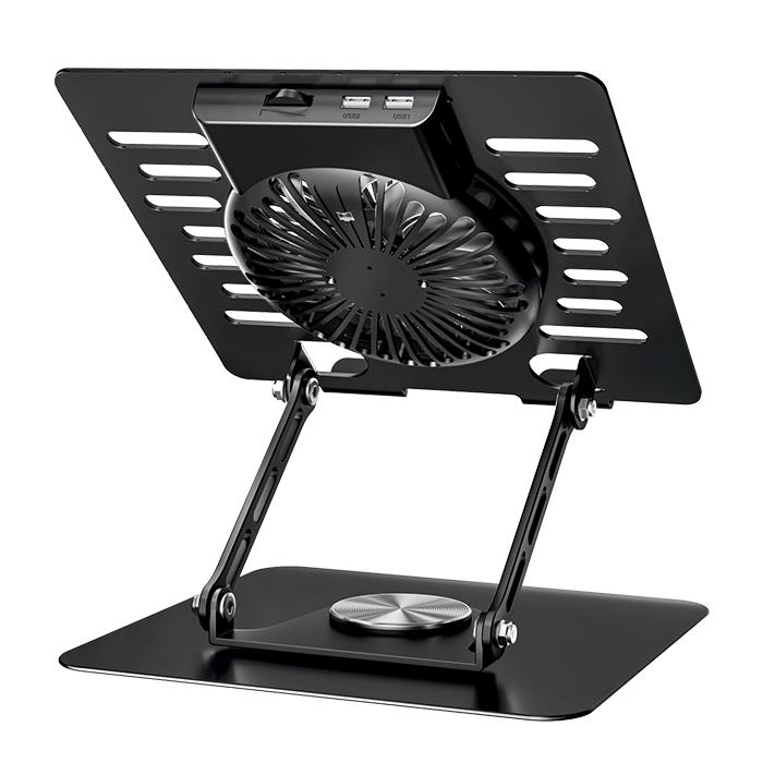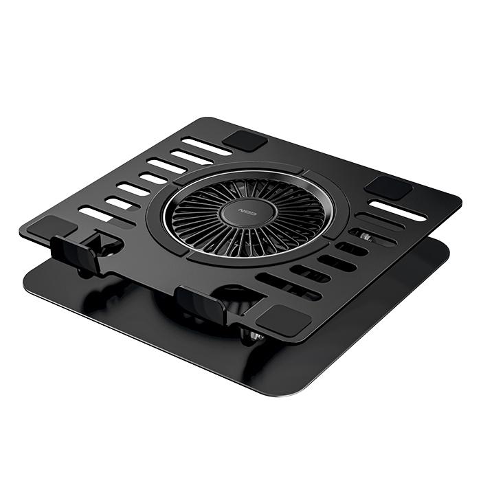 Αναδιπλούμενο Full Motion Notebook Cooler για tablet και laptop έως 15.6''Το Notebook Cooler NOD ALTO θα κρατήσει δροσερό το laptop ή το tablet σας σε κάθε είδους εργασία ή gaming, χάρη στον μεγάλο αθόρυβο ανεμιστήρα 110mm που διαθέτει. Επιπλέον, η ταχύτητα του ανεμιστήρα είναι ρυθμιζόμενη μέσω της αντίστοιχης ροδέλας στο πίσω μέρος.Μπορείτε να τοποθετήσετε laptop ή tablet με διαγώνιο έως και 15.6" και να ρυθμίσετε την κλίση στην κατάλληλη θέση που σας βολεύει, για πιο εργονομική χρήση και πιο ξεκούραστη γωνία θέασης της οθόνης.Η δυνατότητα περιστροφής της επιφάνειας στήριξης κατά 360°, κάνει τo NOD ALTO ακόμα πιο εύχρηστο στη χρήση και στη θέαση.Τέλος, το NOD ALTO διαθέτει μια θύρα USB για την τροφοδοσία του και μία επιπλέον θύρα USB για την σύνδεση περιφερειακών συσκευών.Χαρακτηριστικά:- Κατάλληλο για tablet ή laptop έως 15.6"- Επιφάνεια στήριξης laptop: 220x225mm- Περιστροφή έως 360°- Μεγάλος ανεμιστήρας, διαμέτρου 110mm- Ρυθμιζόμενη κλίση- 2x θύρες USB-Α για τροφοδοσία του notebook cooler και σύνδεση συσκευών- Αντιολισθητικά πέλματα για μεγαλύτερη σταθερότητα- Ρυθμιζόμενη ταχύτητα ανεμιστήρα έως 1000±10% RPM με επιλογή απενεργοποίησης του ανεμιστήρα- Μέγιστη ροή αέρα: 38CFM- Υλικό: Μέταλλο + πλαστικό - Συνολικές διαστάσεις (διπλωμένο): 220x225x50mm- Βάρος: 1.6Kg- Θόρυβος: 28dB(A)- Τάση λειτουργίας: DC 5V- Ισχύς: 2W- Χρώμα: Μαύρο- 2 χρόνια εγγύηση
