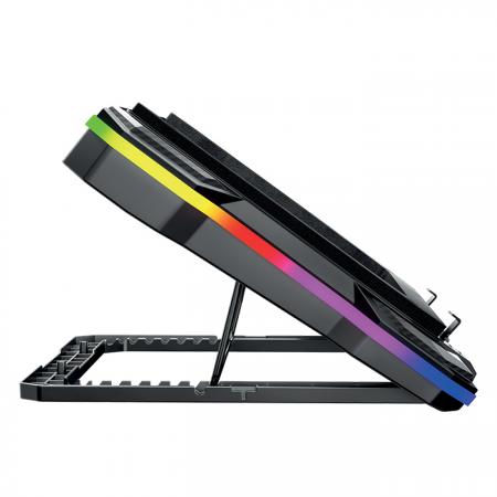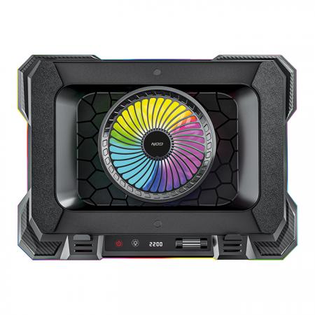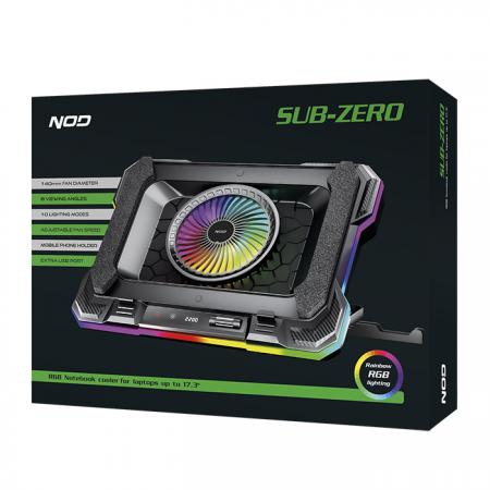 Notebook Cooler RGB για laptop έως και 17.3".Δώστε την καλύτερη δυνατή ψύξη στο 15άρι ή 17άρι laptop σας με το Notebook cooler NOD SUB-ZERO. Το NOD SUB-ZERO έχει εντυπωσιακό σχεδιασμό, ο οποίος παράλληλα στοχεύει στην επίτευξη της καλύτερης δυνατής ψύξης του laptop. Ο μεγάλος ανεμιστήρας 140mm που βρίσκεται τοποθετημένος στο κέντρο της βάσης προσφέρει στοχευμένο και αποδοτικό ρεύμα αέρα, ενώ η εσοχή που δημιουργείται στην βάση αλλά και τα μαξιλαράκια από αφρολέξ στα δύο πλαινά, εξασφαλίζουν ότι το ρεύμα του αέρα που δημιουργείται θα διοχετευτεί με ισχυρή πίεση προς το κάτω μέρος του laptop. Μπορείτε να ρυθμίσετε την ταχύτητα του ανεμιστήρα από 300 έως και 2200 RPM για κορυφαίες επιδόσεις, αναλόγως της εργασίας που εκτελείτε και της θερμοκρασίας περιβάλλοντος.Το SUB-ZERO διαθέτει LCD οθόνη (προβολή επιλεγμένων στροφών του ανεμιστήρα), περιστροφικό ρυθμιστή ταχύτητας και 2 πλήκτρα αφής, ένα για τον έλεγχο του RGB φωτισμού κι ένα ON/OFF για φωτισμό και λειτουργία ανεμιστήρα. Με κάθε πάτημα του αντίστοιχου πλήκτρου επιλέγετε ανάμεσα σε 10 μοτίβα RGB φωτισμού, έχοντας παράλληλα την δυνατότητα απενεργοποίησης του, αναλόγως της διάθεσης ή των προτιμήσεών σας.Η βάση διαθέτει ρυθμιζόμενη κλίση 8 επιπέδων (20° έως 45°) πετυχαίνοντας όχι μόνο καλύτερη ψύξη, αλλά και μεγαλύτερη εργονομία και στάση σώματος κατά την χρήση του laptop. Για να λειτουργεί αποδοτικά ο ανεμιστήρας, πρέπει να επιλέξετε τουλάχιστον την πρώτη σκάλα κλίσης του notebook cooler. Επίσης, διαθέτει στο πλάι και μία πρακτική και αποσπώμενη βάση στήριξης για το smartphone, ούτως ωστε να βρίσκεται πάντα στο οπτικό σας πεδίο και να μην χάνετε καμία ειδοποίηση.Το ειδικό αφρώδες υλικό στα πλαινά, κουμπώνει με ενσωματωμένα μαγνητάκια επάνω στην βάση και ενισχύει τη σταθερότητα του laptop, απορροφά τους κραδασμούς, μειώνει τον θόρυβο και βελτιστοποιεί την απόδοση ψύξης, μην επιτρέποντας στον φρέσκο αέρα να διαφύγει εύκολα προς τα πλαινά. Τα αντιολισθητικά πέλματα εξασφαλίζουν μέγιστη σταθερότητα σε κάθε επιφάνεια και τα δύο ρυθμιζόμενα σε ύψος stop στην βάση του notebook cooler, το ασφαλίζουν καλά στην θέση του.Στην είσοδο του αέρα του ανεμιστήρα (η κάτω πλευρά του ανεμιστήρα) υπάρχει ειδικό, πλενόμενο φίλτρο για την κατακράτηση της σκόνης, ούτως ώστε το laptop σας να δέχεται μόνο καθαρό αέρα, απαλλαγμένο από σκόνη, κρατώντας το όσο πιο καθαρό γίνεται. Η βάση NOD SUB-ZERO διαθέτει μια θύρα USB για τροφοδοσία και μία επιπλέον θύρα USB για την σύνδεση περιφερειακών συσκευών.Χαρακτηριστικά:- Με ειδικό σχεδιασμό για στοχευμένη ψύξη- Κατάλληλο για laptops έως 17.3''- Με αποσπώμενη βάση στήριξης για το κινητό- Mεγάλος ανεμιστήρας, διαμέτρου 140mm- 10 μοτίβα φωτισμού και δυνατότητα απενεργοποίησης του φωτισμού - LCD οθόνη και πλήκτρα αφής- Ρυθμιζόμενη ταχύτητα ανεμιστήρα έως 2200±10%RPM- Ρυθμιζόμενη κλίση 8 επίπεδων (20°- 45°) - Με ειδικό μαγνητικό αφρώδες υλικό για: - Mέγιστη ψυξη - Yψηλή σταθερότητα - Απορρόφηση κραδασμών - Μείωση θορύβου- Αντιολισθητικά πέλματα για μεγαλύτερη σταθερότητα - Επιπλέον θύρα USB 2.0 Type-A για σύνδεση συσκευών- Μέγιστη ροή αέρα: 89CFM- Υλικό: Μέταλλο + πλαστικό- Συνολικές διαστάσεις: 428x316x58mm- Βάρος: 1.24kg- Τάση λειτουργίας: DC 5V- Ισχύς: 5W- Θόρυβος: 28-52dBA- Χρώμα: Μαύρο- 2 χρόνια εγγύηση