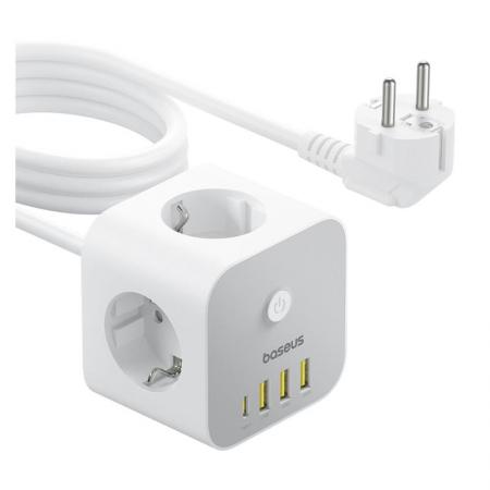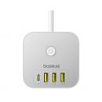 Πολύπριζο Baseus PowerCombo 7in1 3 Θέσεων με Κουμπί On/Off, Θύρες 3xUSB A, 1xUSB C & Καλώδιο 1.5m Λευκό