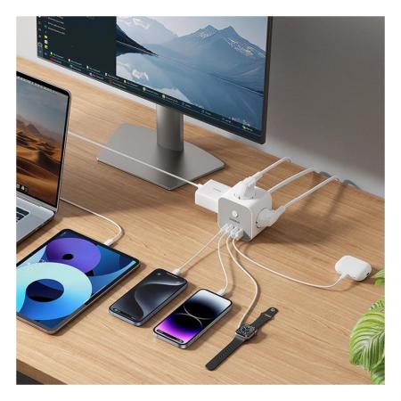 Το Baseus PowerCombo 7 σε 1 Cube είναι ένα συμπαγές και ευέλικτο τροφοδοτικό με 3 πρίζες εναλλασσόμενου ρεύματος, 3 θύρες USB A και 1 θύρα USB C με γρήγορη φόρτιση 20W. Το καλώδιο μήκους 1.5 m εξασφαλίζει ευελιξία, ενώ ο σχεδιασμός κύβου εξοικονομεί χώρο. Ιδανικό για χρήση στο σπίτι ή στο γραφείο, προσφέρει αποτελεσματική φόρτιση και διαχείριση ενέργειας για πολλές συσκευές ταυτόχρονα.