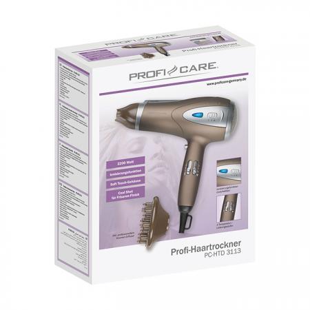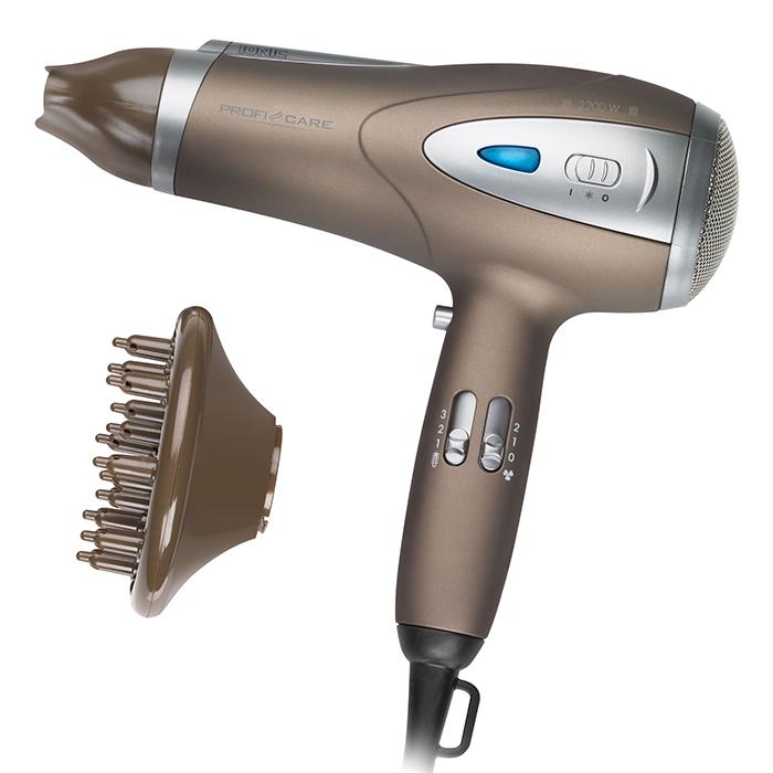 Σεσουάρ μαλλιών 2200W με λειτουργία ιονισμού, σε καφέ χρώμα.- 3 επίπεδα θερμοκρασίας και 2 επίπεδα ροής θερμού αέρα, για να προσαρμόζεται στις προσωπικές σας ανάγκες - Επαγγελματική αποσπώμενη φυσούνα για δημιουργικό φορμάρισμα και έξτρα όγκο - Αποσπώμενο και περιστρεφόμενο 360° ακροφύσιο, για καλύτερο φορμάρισμα- Διακόπτης επιλογής κρύου αέρα "cool shot" που σταθεροποιεί το φορμάρισμα- Μαλακή λαβή- Αποσπώμενο φίλτρο εισαγωγής αέρα, για εύκολο καθαρισμό - Λειτουργία ιονισμού - ευκολότερο χτένισμα χάρη στο αντιστατικό αποτέλεσμα, που χαρίζει στα μαλλιά λάμψη και απαλότητα χωρίς να τα ξηραίνει- Προστασία υπερθέρμανσης- Διαθέτει γάντζος ανάρτησης- Χρώμα: Καφέ- Τροφοδοσία: 230V, 50/60Hz- Ισχύς: 2200W
