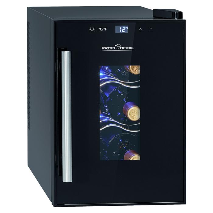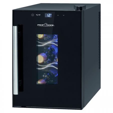 Συντηρητής κρασιών χωρητικότητας 6 μπουκαλιών (17L), 21.6W.Για τους λάτρεις του καλού και ποιοτικού κρασιού, η συλλογή τους είναι η περιουσία τους! Για να διατηρηθεί και να εξελιχθεί όπως πρέπει και αξίζει, χρειάζεται ένα περιβάλλον με την κατάλληλη σταθερή θερμοκρασία, σωστή κυκλοφορία του αέρα, χωρίς οσμές και κραδασμούς. Ο συντηρητής κρασιών PROFI-COOK PC-WK 1230, με χωρητικότητα 6 μπουκαλιών των 0,75L, μοντέρνα γραμμή και υψηλή αισθητική, σε μαύρο χρώμα, είναι η ιδανική επιλογή. Διαθέτει πίνακα ελέγχου με οθόνη LCD, με μπλε ψηφιακές ενδείξεις, και χαμηλό επίπεδο θορύβου χωρίς κραδασμούς. Με αυτόν το μοντέρνο συντηρητή κρασιού, μπορείτε να είστε ήσυχοι ότι τα κρασιά σας διατηρούνται ακριβώς στις απαιτούμενες θερμοκρασίες. Έτσι, μπορείτε να ανοίξετε οποιοδήποτε μπουκάλι, με την σιγουριά ότι θα απολαύσετε και θα ευχαριστηθείτε εσείς, οι επισκέπτες ή η οικογένεια σας ένα εκπληκτικά δροσερό ποτήρι κρασί. Τεχνικά χαρακτηριστικά:- Χωρητικότητα: 17lt - Χωρητικότητα σε φιάλες: 6 x 0,75L - Πίνακας ελέγχου με οθόνη LCD- Ψηφιακές ρυθμίσεις θερμοκρασίας με μπλε φωτισμό - Διαθέτει πλήκτρα αφής, για εύκολο χειρισμό- Θερμοηλεκτρική ψύξη - Δεν λειτουργεί με συμπιεστή - Κλιματική κλάση N (+16°C έως +32°C) - Χαμηλό επίπεδου θορύβου ? 26 dB, χωρίς κραδασμούς - Οικολογικό ψυκτικό υγρό: R600a- Ενεργειακής κλάσης: GΓενικά χαρακτηριστικά: - Ηλεκτρονική ρύθμιση θερμοκρασίας και ηλεκτρονικός έλεγχος - Ρυθμιζόμενο εύρος θερμοκρασίας: +11°C έως 18°C (δεν μπορεί να πιάσει υψηλότερη θερμοκρασία από τη θερμοκρασία περιβάλλοντος στον τόπο εγκατάστασης)- Εσωτερικός φωτισμός LED, που ενεργοποιείται με ανεξάρτητο διακόπτη και φωτίζει όμορφα την συλλογή σας - 3 επίπεδα αποθήκευσης με 2 αποσπώμενα ράφια χρωμίου, για εύκολη πρόσβαση και αποθήκευση - Πόρτα από τριπλό γυαλί με ειδικό φίλτρο προστασίας UV- Πρακτική λαβή από ανοξείδωτο ατσάλι, για εύκολο άνοιγμα - Δεξιόστροφο άνοιγμα πόρτας- Ρυθμιζόμενα σε ύψος ποδαράκια - Χρώμα περιβλήματος: Μαύρο - Εξωτερικές διαστάσεις: 39,5 x 24,6 x 50cm (ΠxΒxΥ)- Εσωτερικές διαστάσεις: 32 x 18 x 28 cm (ΠxBxY) Στοιχεία κατανάλωσης:- Κατανάλωση ενέργειας /24h: 0.518 kWh- Κατανάλωση ενέργειας / έτος: 189 kWh Ηλεκτρική σύνδεση - Τάση: 220-240 V, 50-60 Hz - Ρεύμα: 0.42A- Ισχύς: 21,6W