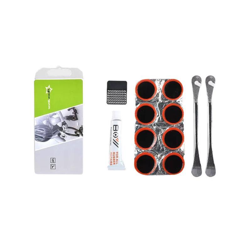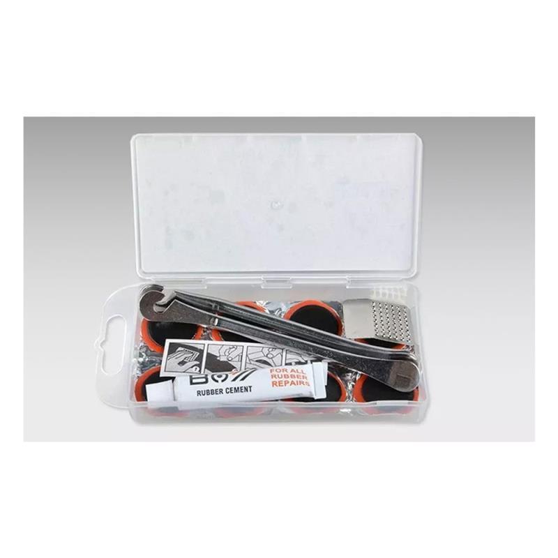 Αυτό το σετ εργαλείων για επισκευή του τροχού ποδηλάτου είναι ιδανικό για διανομείς ή απλά για κάθε ταξίδι με ποδήλατο. Χάρη στο μικρό μέγεθος του εύχρηστου κουτιού, μπορεί να χωρέσει ακόμα και στην τσέπη σας. Αυτά τα εργαλεία θα σας βοηθήσουν να επισκευάσετε τον τροχό του ποδηλάτου σας γρήγορα και εύκολα. Ο μεταλλικός μοχλός ελαστικού θα σας βοηθήσει να σκάψετε κάτω από το ελαστικό. Από την άλλη πλευρά, η ξύστρα θα καθαρίσει και θα γυαλίσει επιμελώς την περιοχή του τρυπήματος, ώστε το μπάλωμα να κολλήσει τέλεια στο ελαστικό.
