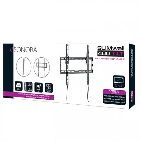 SLIM επιτοίχια βάση στήριξης με ρύθμιση κλίσης, για τηλεοράσεις LED από 32" έως 65"Κατάλληλη για τηλεοράσεις με max. VESA 400x400 και μέγιστο βάρος 40 kg.Μια βάση με στιβαρό και λεπτό σχεδιασμό, για να αναρτήσετε την τηλεόρασή σας μόλις 20mm μακριά από τον τοίχο, δίνοντας έτσι μια μίνιμαλ εμφάνιση στον χώρο σας.Τέλος, διαθέτει εύκολο σύστημα κλειδώματος με spring lock και κορδόνια ξεκλειδώματος της βάσης για εύκολη τοποθέτηση κι αφαίρεση από τον τοίχο.Χαρακτηριστικά:- Τύπος βάσης: Σταθερή με ρύθμιση κλίσης- VESA (mm): 400x400, 400x300, 400x200, 300x300, 300x200, 200x200- Μέγιστο βάρος τηλεόρασης: 40Kg- Ελάχιστη διαγώνιος οθόνης: 32"- Μέγιστη διαγώνιος οθόνης: 65"- Slim σχεδιασμός με απόσταση από τον τοίχο: 20mm- Αυτόματο κλείδωμα με συστημα spring lock- Κάθετη κλίση: - 8°- Υλικό: Χάλυβας- Χρώμα: Μαύρο- Στη συσκευασία συμπεριλαμβάνονται: - Βίδες τοίχου και ούπα - Βίδες στήριξης της τηλεόρασης- 2 χρόνια εγγύηση
