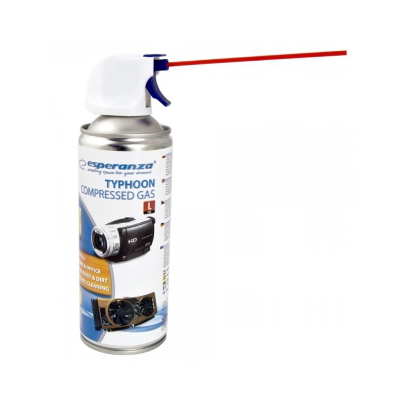 Σπρέι πεπιεσμένου αέρα Esperanza 400ml για ηλεκτρονικές συσκευές. Kατάλληλο για οικιακή και επαγγελματική χρήση, ιδανικό για καθαρισμό και αφαίρεση σκόνης από δυσπρόσιτα σημεία των συσκευών σας. Ιδανικό για υπολογιστές, πληκτρολόγια, ταμειακές, εκτυπωτές, κάμερες, μηχανολογικό εξοπλισμό, σαλόνι αυτοκινήτου κλπ. Περιλαμβάνει ακροφύσιο ψεκασμού για ακριβέστερη χρήση. Ασφαλές και φιλικό προς το περιβάλλον. Αποσυνδέστε από το ρεύμα τις ηλεκτρικές συσκευές που πρόκειται να καθαρίσετε και επανασυνδέστε 15 λεπτά μετά τον καθαρισμό τους. Να μη χρησιμοποιείται σε πλαστικές γυαλιστερές επιφάνειες.