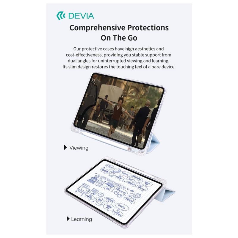 Οι θήκες Devia Cool Series για Apple iPad συνδυάζουν στυλ και ανθεκτικότητα με έναν κομψό σχεδιασμό. Κατασκευασμένες από εύκαμπτο, αντικραδασμικό TPU, προσφέρουν προστασία από πτώσεις και γρατζουνιές. Το αναδιπλούμενο κάλυμμα λειτουργεί και ως βάση στήριξης για άνετη προβολή. Ακριβείς εγκοπές εξασφαλίζουν εύκολη πρόσβαση σε όλες τις λειτουργίες. Ελαφριές και ανθεκτικές, ιδανικές για αξιόπιστη προστασία με μινιμαλιστική αισθητική.