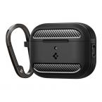 Θήκη Σιλικόνης Spigen Rugged Armor Apple AirPods Pro 3 με Γάντζο Μαύρο