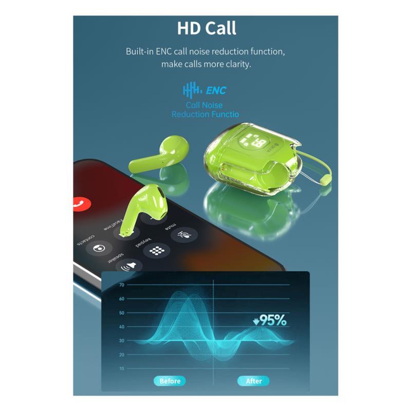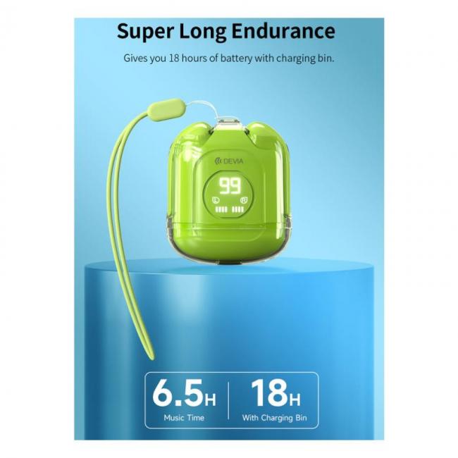 Τα Devia TWS-M6 ασύρματα ακουστικά με τεχνολογία Bluetooth 5.3 προσφέρουν γρήγορη και σταθερή σύνδεση με χαμηλή κατανάλωση ενέργειας, ενώ η λειτουργία ENC μειώνει τον εξωτερικό θόρυβο για πιο καθαρές κλήσεις. Παρέχουν έως 4 ώρες αναπαραγωγής με μία φόρτιση και έως 18 ώρες συνολικά με τη θήκη φόρτισης, η οποία διαθέτει οθόνη ένδειξης μπαταρίας για εύκολο έλεγχο. Με επιφάνεια αφής για έλεγχο μουσικής και κλήσεων, δυνατότητα χρήσης κάθε ακουστικού ξεχωριστά και λειτουργία game mode για χαμηλό latency, αποτελούν μια πρακτική και σύγχρονη επιλογή για τις δραστηριότητες σας.