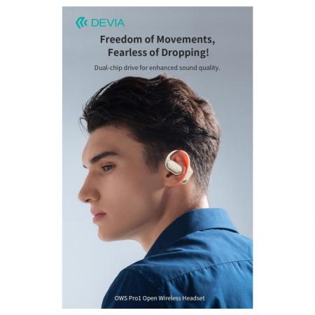 Τα Devia OWS Pro1 EM401 είναι ελαφριά (7g) πραγματικά ασύρματα ακουστικά με σχεδιασμό γάντζου για άνεση και σταθερότητα. Διαθέτουν επεξεργασία ήχου διπλού chip και ENC για καθαρότερες κλήσεις. Με Bluetooth 5.3, low latency για gaming και ήχο SBC, προσφέρουν έως και 10 ώρες αναπαραγωγής ανά φόρτιση, με δυνατότητα επέκτασης έως 40 ώρες με τη θήκη 600mAh. Η θήκη φόρτισης USB C επαναφορτίζει τα ακουστικά 70mAh έως και τρεις φορές, εξασφαλίζοντας μακροχρόνια απόδοση.