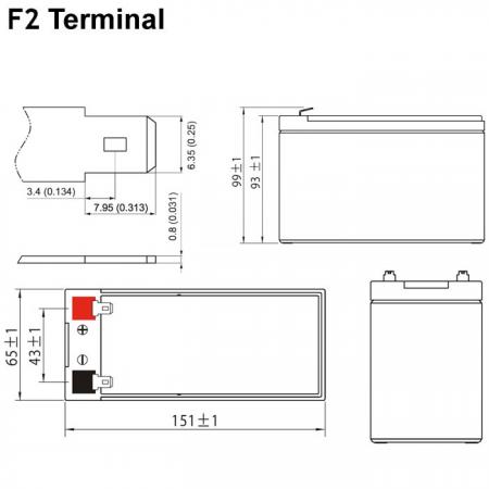 Μπαταρία μολύβδου 12V 7.2Ah, με F2 terminals.Διαστάσεις:- Μήκος: 151mm- Πλάτος: 65mm- Ύψος: 93.5mm- Τύπος Terminal: F2