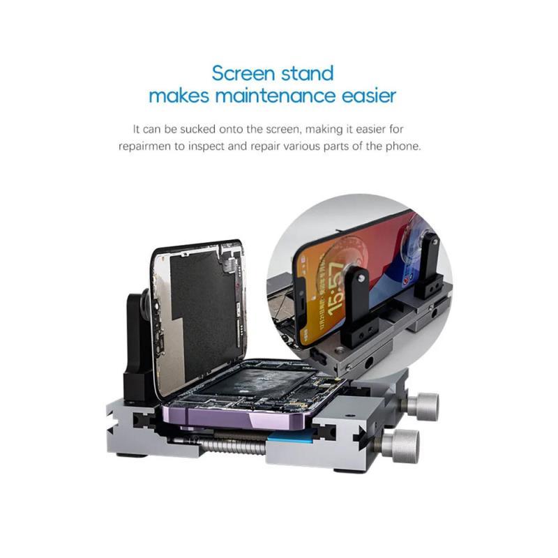 Το TBK202A είναι ένα πρακτικό εργαλείο χειροκίνητης αποσυναρμολόγησης οθόνης 3 σε 1, σχεδιασμένο για την επισκευή κινητών τηλεφώνων. Συνδυάζει μία θέση στερέωσης οθόνης, ένα εξάρτημα διατήρησης πίεσης LCD και ένα εργαλείο αποσυναρμολόγησης οθόνης σε μία μονάδα. Αυτή η συσκευή επιτρέπει στους τεχνικούς να συγκρατούν και να διατηρούν με ασφάλεια την πίεση στις οθόνες LCD κατά τη διάρκεια των επισκευών, εξασφαλίζοντας ακριβή ευθυγράμμιση και μειώνοντας τον κίνδυνο βλάβης. Ο ρυθμιζόμενος σχεδιασμός του προσαρμόζεται σε διάφορα μοντέλα τηλεφώνων, καθιστώντας το απαραίτητο εργαλείο για τις επισκευές οθόνης κινητών τηλεφώνων. Το TBK202A ενισχύει την αποτελεσματικότητα και την ακρίβεια, καθιστώντας τη διαδικασία επισκευής ευκολότερη και πιο αξιόπιστη.