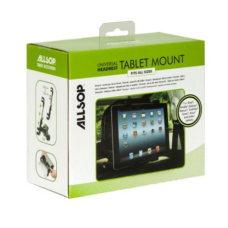 Universal Βάση Στήριξης Αυτοκινήτου Allsop για το κάθισμα οδηγού/συνοδηγού για Tablets διαστάσεων από 105 έως 195 mm. Πολύ ανθεκτική κατασκευή με clips ώστε να προσαρμόζεται σε οποιοδήποτε προσκέφαλο οδηγού/συνοδηγού. Ο περιστροφικός σχεδιασμός 360ο που διαθέτει καθιστά την βάση κατάλληλη και για landscape mode.