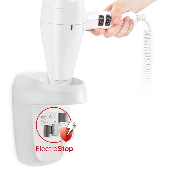 Επαγγελματικό σεσουάρ μαλλιών ξενοδοχειακού τύπου με επιτοίχια βάση και προστασία ElectroStop, 2000W.Η VALERA είναι εταιρεία ηγέτης στα προϊόντα περιποίησης μαλλιών, με πολυετή εμπειρία στην συγκεκριμένη κατηγορία, και με ιδιαίτερη εξειδίκευση και ανάπτυξη στην σειρά που εξυπηρετεί τις ανάγκες των ξενοδοχειακών εγκαταστάσεων. Τα σεσουάρ VALERA διαθέτουν απαράμιλλη ποιότητα κατασκευής και ενσωματώνουν πρωτοποριακές τεχνολογίες, ενώ επιπλέον σχεδιάζονται, εξελίσσονται και κατασκευάζονται στην Ελβετία.Όλα τα προϊόντα VALERA σχεδιάζονται και παράγονται με γνώμονα να φροντίζουν, να ομορφαίνουν και να περιποιούνται τα μαλλιά σας.Η VALERA επινόησε μια νέα ιδέα για χρήση σε μπάνια και λανσάρει στην αγορά τη νέα σειρά σεσουάρ μαλλιών με το όνομα VALERA PROTECT. Οι συσκευές είναι εξοπλισμένες με συσκευή υπολειπόμενου ρεύματος ElectroStop (RCD) στην επιτοίχια βάση. Ελαχιστοποιεί τον κίνδυνο ηλεκτροπληξίας που προκαλείται από ενδεχόμενο ρεύμα διαρροής (π.χ. το πιστολάκι μαλλιών που έρχεται κατά λάθος σε επαφή με νερό).Το ElectroStop είναι απαραίτητο σε δωμάτια χωρίς συσκευή υπολειπόμενου ρεύματος. Επιπλέον, χάρη στο ονομαστικό διαφορικό ρεύμα 10 mA, το ElectroStop είναι πολύ πιο ευαίσθητο και αποτελεσματικό από τις συνήθως εγκατεστημένες συσκευές με ονομαστική τιμή 30 mA.Το Swiss Silent Jet Protect 2000, είναι ένα πρακτικό σεσουάρ μαλλιών ξενοδοχειακού τύπου με ενσωματωμένη επιτοίχια βάση για εξοικονόμηση χώρου και μέγιστη εργονομία. Η εύκολη και γρήγορη τοποθέτηση και αποδέσμευση παρέχει εξαιρετική λειτουργικότητα, καθώς είναι πάντοτε εύκολα προσβάσιμο. Η τεχνολογία Smart Airflow που διαθέτει, βελτιστοποιεί την ροή του αέρα, μειώνει την τριβή και τη διασπορά και αυξάνει το αποτέλεσμα συμπίεσης του αέρα, χαρίζοντας βέλτιστα αποτελέσματα με χαμηλά επίπεδα θορύβου. Επιπλέον, το σπιράλ καλώδιο εγγυάται ευελιξία στη χρήση και ελευθερία στο σημείο τοποθέτησης αφού φτάνει μέχρι και 2.5m μήκος. Τέλος, διαθέτει δύο ανεξάρτητους διακόπτες επιλογής ταχύτητας και θερμοκρασίας, διακόπτη on στην λαβή, ενώ επίσης έχει διακόπτη ενεργοποίησης / απενεργοποίησης στην επιτοίχια βάση.Χαρακτηριστικά:- Επαγγελματικό AC μοτέρ 2000W για ισχυρή ροή αέρα και μεγάλη διάρκεια ζωής, 2.000 h- Tεχνολογία Smart Airflow, για καλύτερη κυκλοφορία και συμπίεση του αέρα και χαμηλά επίπεδα θορύβου, 64dB- Δύο ανεξάρτητοι διακόπτες επιλογής 2 επιπέδων ταχύτητας αέρα και 3 επιπέδων θερμοκρασίας, για να προσαρμόζετε την λειτουργία του στις ανάγκες σας- Διαθέτει διακόπτη on στη λαβή, για ασφαλή χρήση- Διαθέτει ειδικό διακόπτη ασφαλείας για αυτόματη απενεργοποίηση όταν τοποθετείται στη βάση του- Security heating element- Εύκολη τοποθέτηση και αποδέσμευση από τη βάση- Αποσπώμενο μεταλλικό φίλτρο εισαγωγής αέρα, για εύκολο καθαρισμό- Διαθέτει επιτοίχια βάση στήριξης με ELECTROSTOP, με συσκευή υπολειπόμενου ρεύματος 10mA- Διαθέτει ειδικό διακόπτη ασφαλείας για αυτόματη απενεργοποίηση όταν τοποθετείται στη βάση του- Ελαστικό και πρακτικό σπιράλ καλώδιο 2.5m, για ευελιξία κατά τη χρήση- Ενσωματωμένο στόμιο αέρα, με περιστροφή 360°- Εξαιρετικά ελαφρύ - Αξιολόγηση IP: IP20- Ιδανικό για χρήση σε μικρούς δημόσιους χώρους με χαμηλή συχνότητα επισκεπτών, όπως μικρές πισίνες ξενοδοχείων, μικρής χρηστικότητας κλαμπ ευεξίας και σπα- Συμπεριλαμβάνονται 3 βίδες και 3 ούπα για την τοποθέτηση της επιτοίχιας βάσης - Χρώμα: Λευκό- Τροφοδοσία: 220-240V , 50/60Hz (μέσω ηλεκτρολογικής εγκατάστασης)- Ισχ