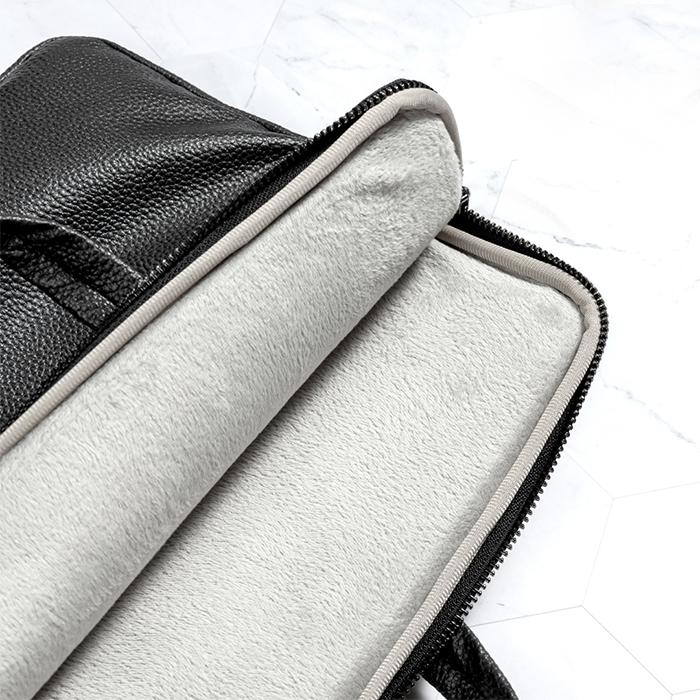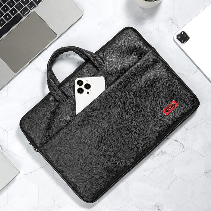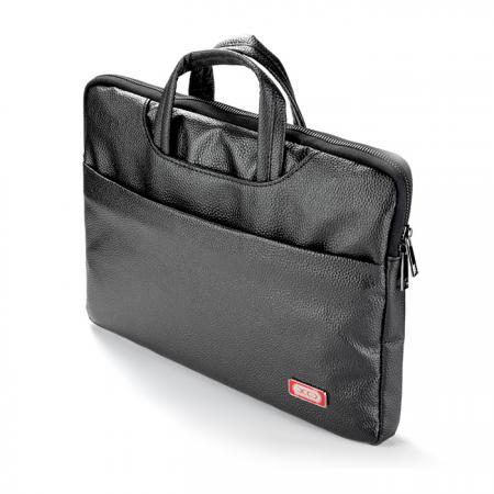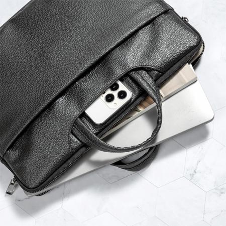 Τσάντα χειρός για laptop έως 15 ίντσες, σε μαύρο χρώμαΧαρακτηριστικά:- Κατάλληλο για laptop έως 15"- Ειδική θήκη laptop με ενισχυμένο αφρώδες προστατευτικό υλικό για προστασία του laptop- Ανεξάρτητη θήκη με φερμουάρ για τα αξεσουάρ και μπροστινή τσέπη, για καλύτερη οργάνωση των αντικειμένων σας- 2 εξωτερικές θήκες- Πρακτική χειρολαβή για εύκολη μετακίνηση- Ενσωματώνεται στην λαβή τσάντας τρόλεϊ (pass-though)- Διαστάσεις: 390 x 330 x 21 mm- Υλικό: Τεχνητό δέρμα (PU) με σχέδιο lychee, ανθεκτικό στις πιτσιλιές - Χρώμα: Μαύρο- Συσκευασία με hook