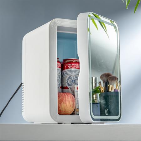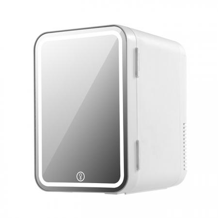 Mini ψυγείο καλλυντικών με καθρέφτη, σε λευκό χρώμαΧαρακτηριστικά:- Συμπαγής και ελαφρύς σχεδιασμός- Εξοικονόμηση χώρου - Λειτουργία ψύξης και θέρμανσης στην ίδια συσκευή- Πρόσοψη επενδυμένη με καθρέφτη με ενσωματωμένο LED φωτισμό- Ιδανική επιλογή για χρήση σε υπνοδωμάτια, γραφεία και αυτοκίνητα- Με υποδοχή τροφοδοσίας για οικιακή χρήση(220V) και για το αυτοκίνητο(12V)- Χωρητικότητα ψυγείου: 5L- Ισχύς θέρμανσης: 2 - 65°C- Μέγιστη κατανάλωση ισχύος: 55 W- Τροφοδοσία: AC 100 - 240V 50/60Ηz & DC 12V- Υλικό: ΡΡ, Αλουμίνιο- Διαστάσεις: 190 x 250 x 290 mm- Βάρος: 2.2Κg- Χρώμα: Λευκό