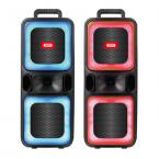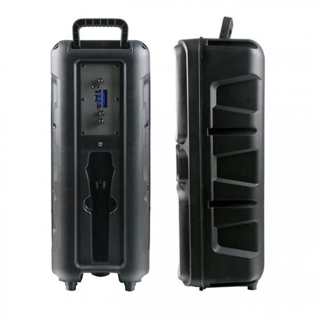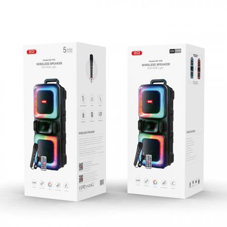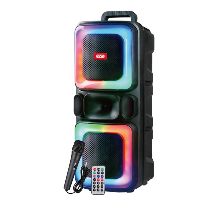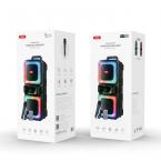 Φορητό TWS ηχείο bluetooth με ασύρματο μικρόφωνο, τηλεχειριστήριο και RGB φωτισμό, 20WΧαρακτηριστικά:- Ιδανικό για καραόκε και πάρτυ- 2 ενσωματωμένα ηχεία- Πολλαπλά προγράμματα δυναμικών φωτισμών RGB LED, που αναβοσβήνουν, ώστε να ολοκληρωθεί η ιδανική ατμόσφαιρα στο πάρτι- Διαθέτει θύρα USB και AUX, για αναπαραγωγή των αγαπημένων σας κομματιών- Διαθέτει θύρα TF, κατάλληλη για την τοποθέτηση microSD κάρτας- Ρυθμιζόμενη ένταση ήχου μικροφώνου και ηχείου- Λειτουργία echo - Λειτουργία TWS (True Wireless Stereo)- Λειτουργία FM- Λειτουργία Bluetooth- Έκδοση Bluetooth: 5.0- Εύρος σήματος bluetooth: 10 m- Υποστήριξη πρωτοκόλλου Bluetooth: A2DP 1.3, AVRCP 1.5- Εύρος συχνοτήτων Bluetooth: 2.402-2.480GHz- Λειτουργεί με 1x επαναφορτιζόμενη μπαταρία λιθίου 18650 3000mAh/3.7V- Πλήρης φόρτιση σε μόλις 5 ώρες- Διάρκεια μπαταρίας: 4.5 ώρες (με ένταση 70%)- Φόρτιση μέσω USB Type-C (συμπεριλαμβάνεται το καλώδιο φόρτισης)- Μέγιστη ισχύς εκπομπής ραδιοσυχνοτήτων: 8dB- Τάση εισόδου: DC 5V- RMS: 2x 10W- Συνολική ισχύς: 20W- Εύρος συχνοτήτων: 80Hz-16KHz- Υλικό: Πλαστικό- Διαστάσεις: 246x 216x 593mm- Χρώμα: ΜαύροΠεριεχόμενα συσκευασίας:- Ηχείο Bluetooth- 1x μικρόφωνο (μπορεί να χρησιμοποιηθεί είτε ως ενσύρματο είτε ως ασύρματο)- 1x τηλεχειριστήριο- 1x καλώδιο φόρτισης- 1x Εγχειρίδιο οδηγιών